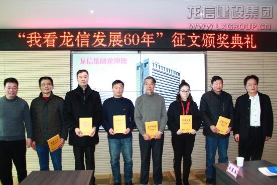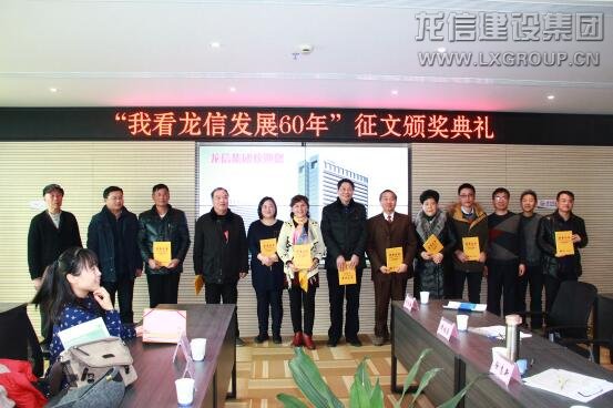 龍信集團(tuán)董事長陳祖新發(fā)表了熱情洋溢的講話,陳董首先向關(guān)心龍信發(fā)展的各界人士表示感謝,對本次征文比賽獲獎人員表示祝賀。向大家介紹了集團(tuán)發(fā)展歷程,龍信成立于1958年,是海門最早成立的建筑施工企業(yè),公司一直堅(jiān)持以建筑為主業(yè),常年奮戰(zhàn)在全國各地,近年來參與家鄉(xiāng)建設(shè),為家鄉(xiāng)人民提供高品質(zhì)全裝修住宅和一流的服務(wù)。目前集團(tuán)四板塊一中心聯(lián)動發(fā)展,形成“建筑產(chǎn)業(yè)化、綠色建筑、全裝修成品住房、養(yǎng)老產(chǎn)業(yè)”四張王牌優(yōu)勢。面對激烈的市場環(huán)境,建筑企業(yè)需不斷創(chuàng)新,變革發(fā)展,未來通過上市進(jìn)一步規(guī)范企業(yè)管理,使得企業(yè)健康長久發(fā)展。陳董談到,龍信的發(fā)展還得益于優(yōu)秀文化的支撐,從創(chuàng)業(yè)之初的“老實(shí)做人、實(shí)在做事”的務(wù)實(shí)作風(fēng),到現(xiàn)在持續(xù)創(chuàng)新、追求高效、合作共贏,無不體現(xiàn)著龍信與時(shí)俱進(jìn)的作風(fēng)。未來,龍信將為實(shí)現(xiàn)百年企業(yè)努力奮斗。隨后,海門市委宣傳部副部長、海門日報(bào)社社長沈健生,總編范軍、副總陳松,龍信集團(tuán)董事長陳祖新、總經(jīng)理唐愛東、副總經(jīng)理何咸軍等為本次“我看龍信發(fā)展60年”征文比賽中榮獲一、二、三等獎的獲獎人員頒發(fā)獎金和證書并合影留念。獲獎代表上臺發(fā)表講話。他們紛紛表示與龍信有著不解之緣,多年來一直關(guān)注龍信的發(fā)展,通過這次征文活動,對龍信有了更為直觀的了解。獲獎代表共同祝愿龍信發(fā)展騰飛,期待實(shí)現(xiàn)百年龍信的宏偉目標(biāo)!最后,所有嘉賓在龍信大廈前合影留念。